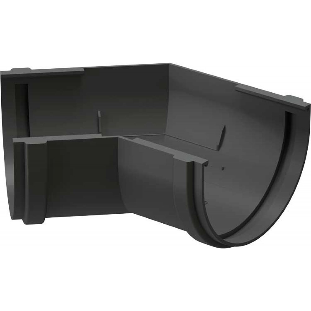 Угловые элементы устанавливаются как на внешних, так и на внутренних углах кровли и предназначены для соединения желобов.