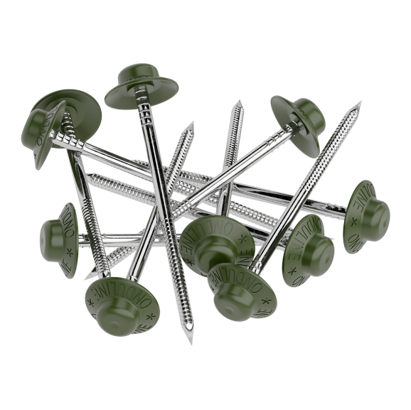 Гвоздь кровельный зеленый Ондулин, Россия - надежно закрепляют кровельный материал и придают крыше привлекательный вид, так как имеют тот же цвет, что и основное покрытие.