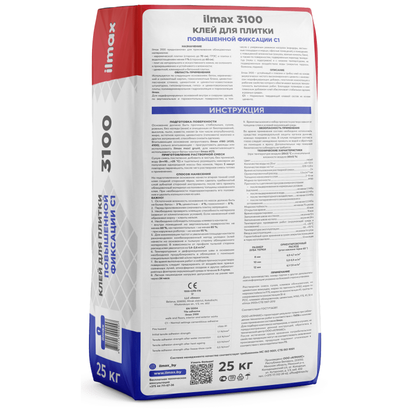 Плиточный клей ilmax 3100 используется для приклеивания: керамических глазурованных и неглазурованных плиток, плит из натурального камня* (кроме мрамора), клинкерных и бетонных плиток, а также плиток из искусственного камня*, в том числе с водопоглощением менее 1%, керамогранитных плиток (ГРЕС) на жесткие, недеформируемые основания внутри и снаружи зданий. Используется на основаниях из следующих материалов: цементные и цементно-известковые штукатурки и стяжки (в том числе полы с подогревом); бетон; кирпич и блоки из ячеистого бетона.