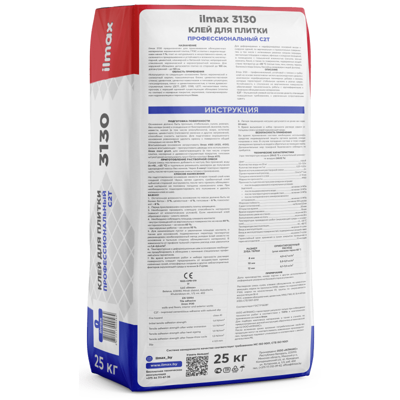 Плиточный клей ilmax 3130 предназначен для приклеивания: керамических (глазурованных и неглазурованных) плиток; плит из натурального камня* (кроме мрамора); клинкерных плиток; бетонных плиток; кислотоупорных плиток; непрозрачной стеклянной мозаики и мозаики из натурального камня* (кроме мрамора); плиток из искусственного камня*; плиток с водопоглощением менее 1%, в том числе, керамогранитных плиток (ГРЕС) на жесткие (недеформируемые), деформируемые и проблемные (критические) основания внутри и снаружи зданий.