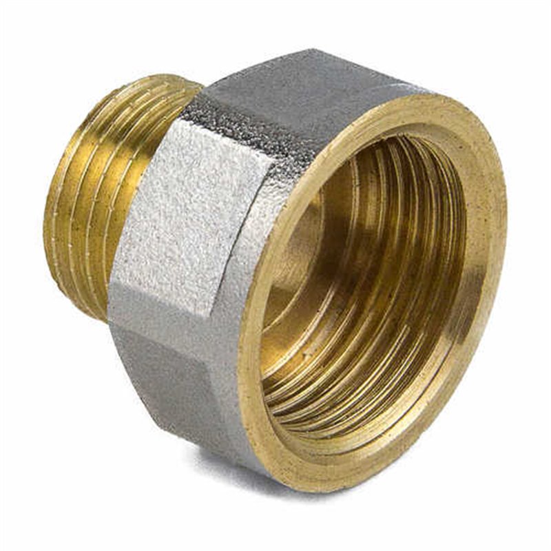 Переход латунь никель реборда Ду 20х15 (3/4"х1/2") ВР/НР 9021 Aquasfera 9021-01 - предназначен для создания разъемных соединений на трубопроводах холодного питьевого водоснабжения, горячего водоснабжения, хозяйственного водоснабжения, отопления, сжатого воздуха, технологических трубопроводах, транспортирующих жидкости и газы не агрессивные к материалу корпуса и уплотнений изделия. Фитинги могут применяться на трубопроводах, выполненных из любого материала (сталь, медь, латунь, пластик, металлополимер, полипропилен.