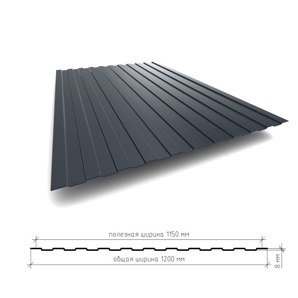 Профилированный лист С-8х1150 (ПЭ-01-7024-0.4) СЕРЫЙ ГРАФИТ 1500х1150