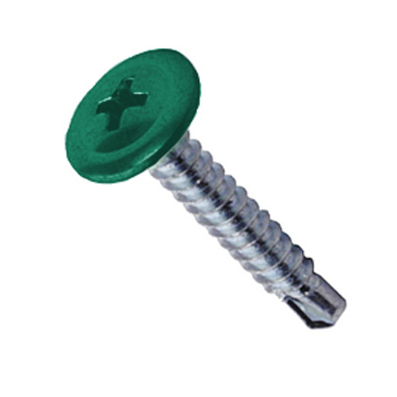 Саморез 4,2х16 RAL6005 зеленый мох с прессшайбой со сверлом - саморез имеет отличную способность просверливания, выполнен из оцинкованной стали и окрашен в различные цвета, что сделает места соединений максимально незаметными.
