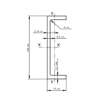 | Расстояние от оси Y - Y до наружной грани стенки (X0): | 2,14 cm |