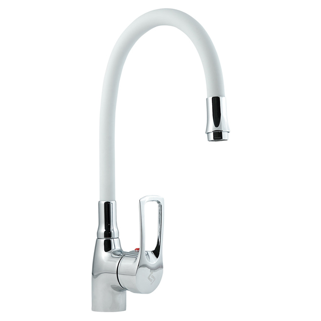 Смеситель для мойки с высоким изливом из силикона, белый, Прораб Славен СЛ-ОД-Ц2Б