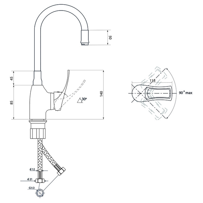 картридж керамический, 40 мм. Угол поворота 100 ° |