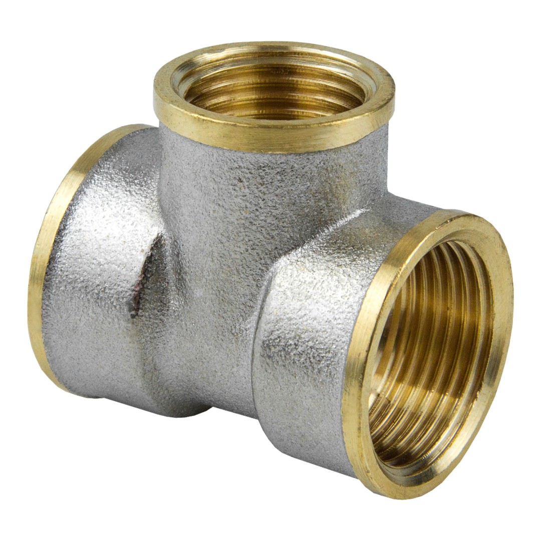 Тройник латунь никель переходн. Ду20х15х20 ВР Aquasfera 9008-01 - предназначен для создания разъемных соединений на трубопроводах холодного питьевого водоснабжения, горячего водоснабжения, хозяйственного водоснабжения, отопления, сжатого воздуха, технологических трубопроводах, транспортирующих жидкости и газы не агрессивные к материалу корпуса и уплотнений изделия. Фитинги могут применяться на трубопроводах, выполненных из любого материала (сталь, медь, латунь, пластик, металлополимер, полипропилен.
