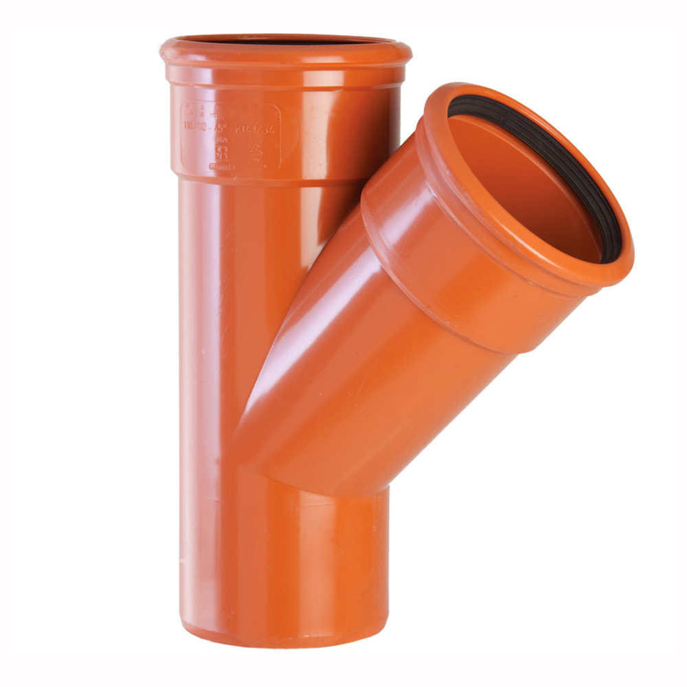 Тройник НПВХ с раструбом коричневый Дн 200х200х45гр б/нап в/к - используется в системах наружной канализации для устройства разветвлений трубопровода.